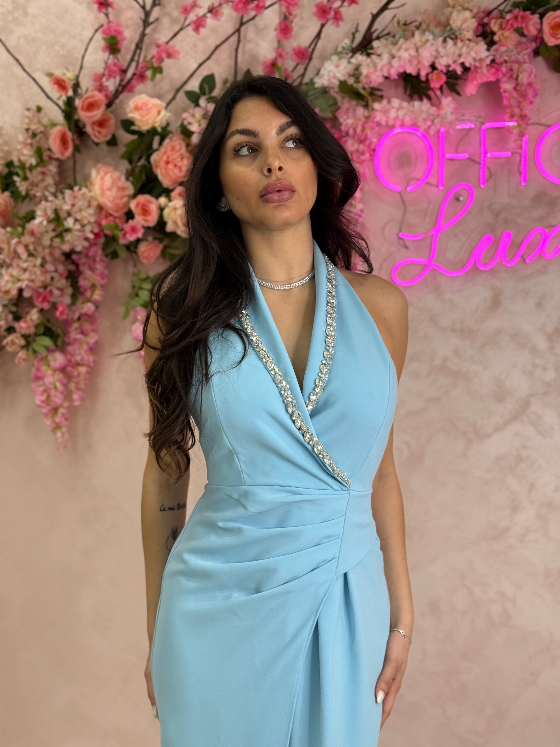 Completa il look con accessori argento per risaltare l’eleganza di questo abito