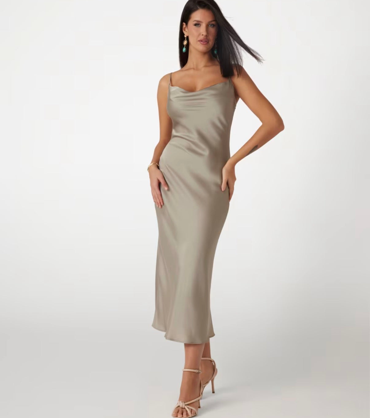 Scopri lo stile senza tempo con il nostro abito midi in raso. Sagomato senza maniche, con spalline sottili e uno scollo quadrato sofisticato. Perfetto per la serata, si abbina con gioielli eleganti e tacchi alti. Il raso dona un tocco glamour e raffinato, ideale per cene di gala oppure eventi chic indimenticabili.