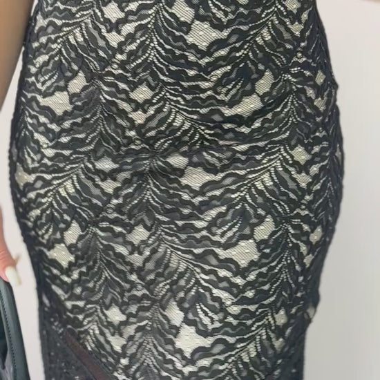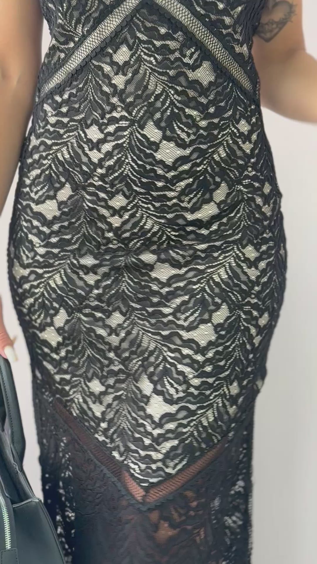 Rivela il tuo fascino con questo maxi abito bodycon in pizzo. Lo scollo all’americana esalta la silhouette, mentre finiture sofisticate e il cut-out posteriore aggiungono un allure sensuale. Perfetto per una serata speciale, abbinalo a tacchi a spillo per completare il look.