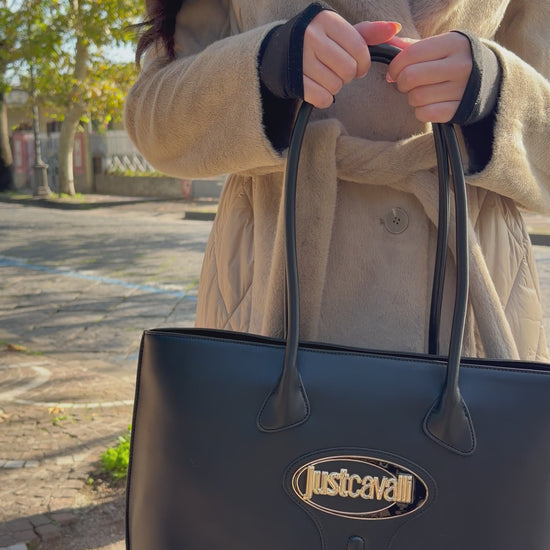 La borsa nella foto è una shopping bag firmata Just Cavalli, dal design elegante e contemporaneo.