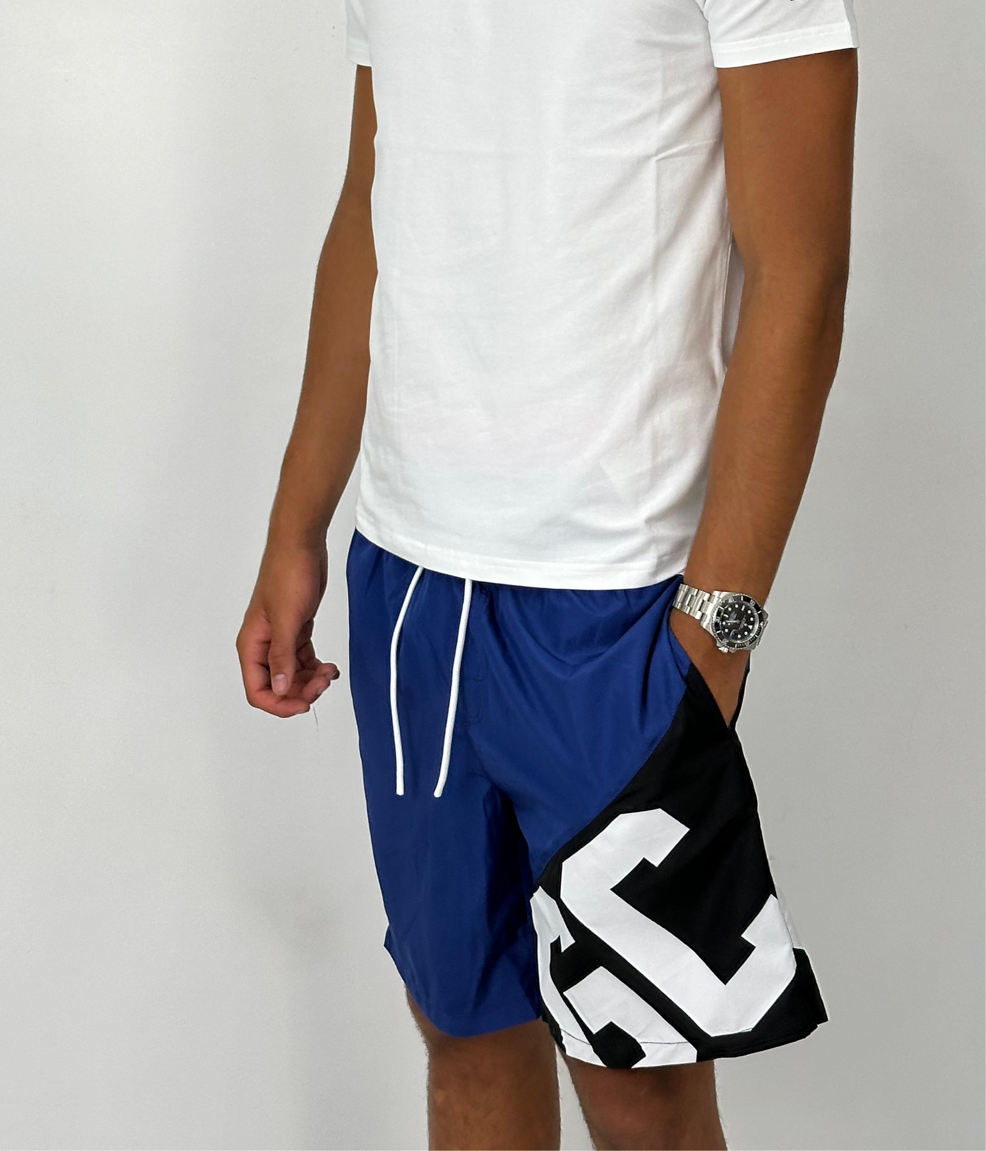 Costume da bagno con band logo front e back. Vita elasticizzata regolabile con laccetti.