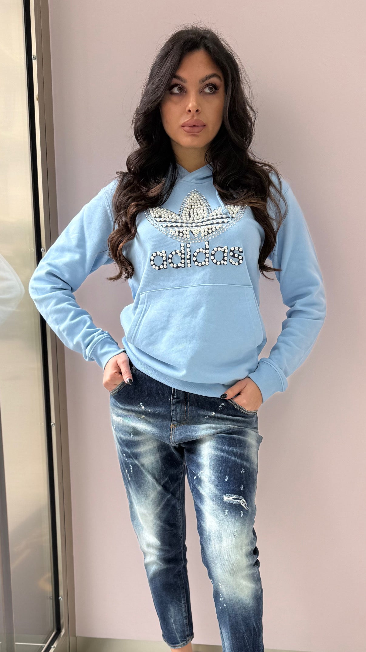 Felpa Adidas customizzata con perle e strass 100% cotone, vestibilità over size