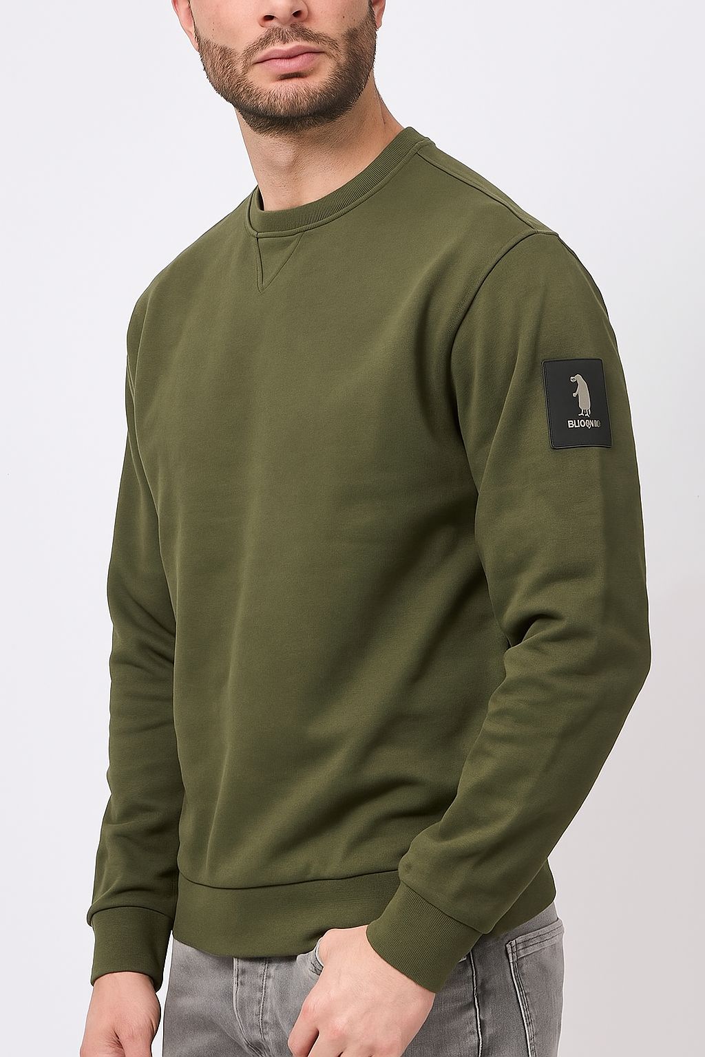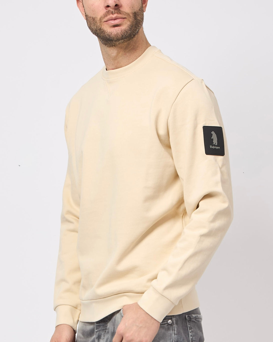 Felpa uomo firmata Refrigue modello girocollo con patch con logo sul braccio, tinta unita e realizzata in cotone.
