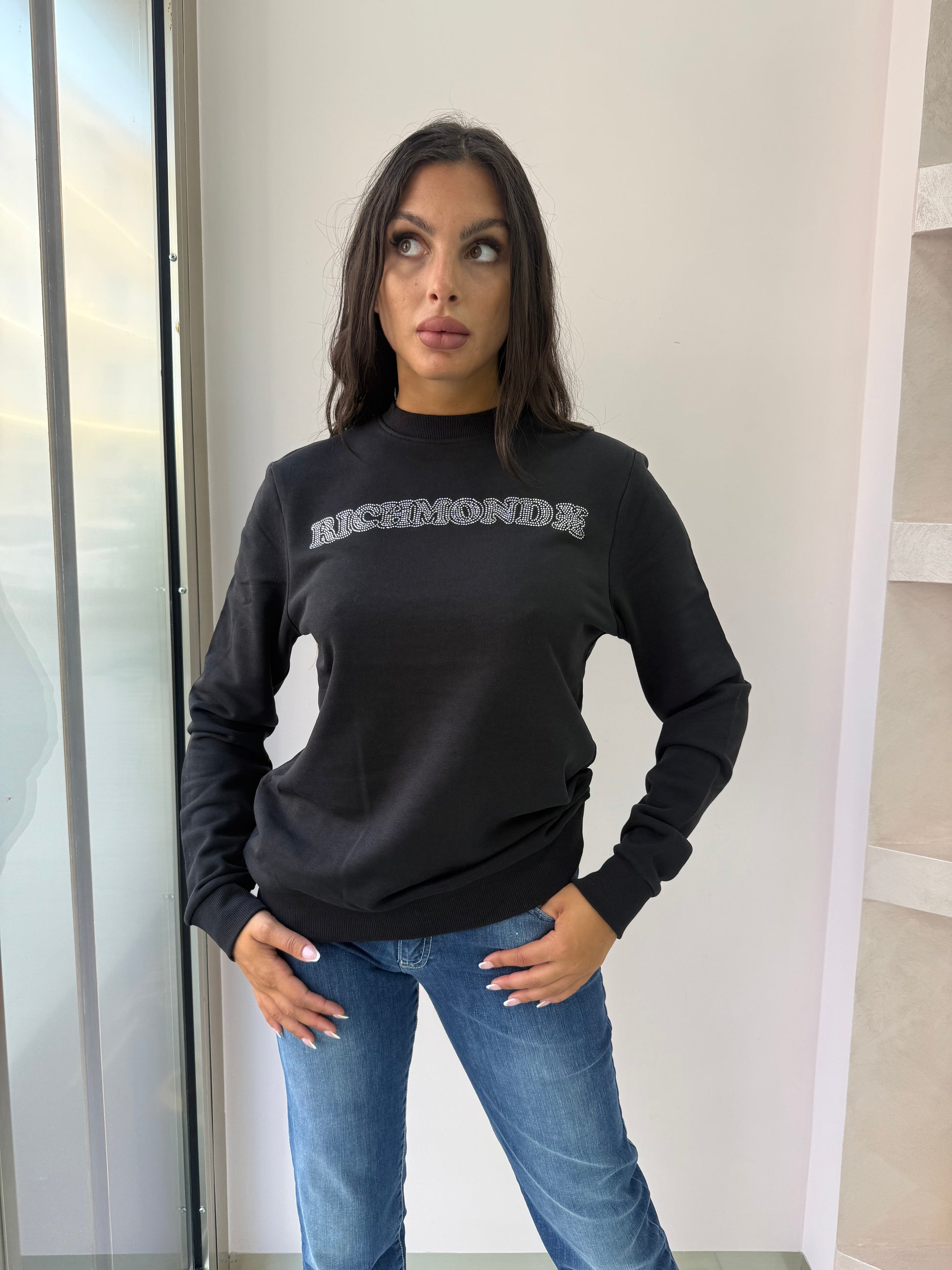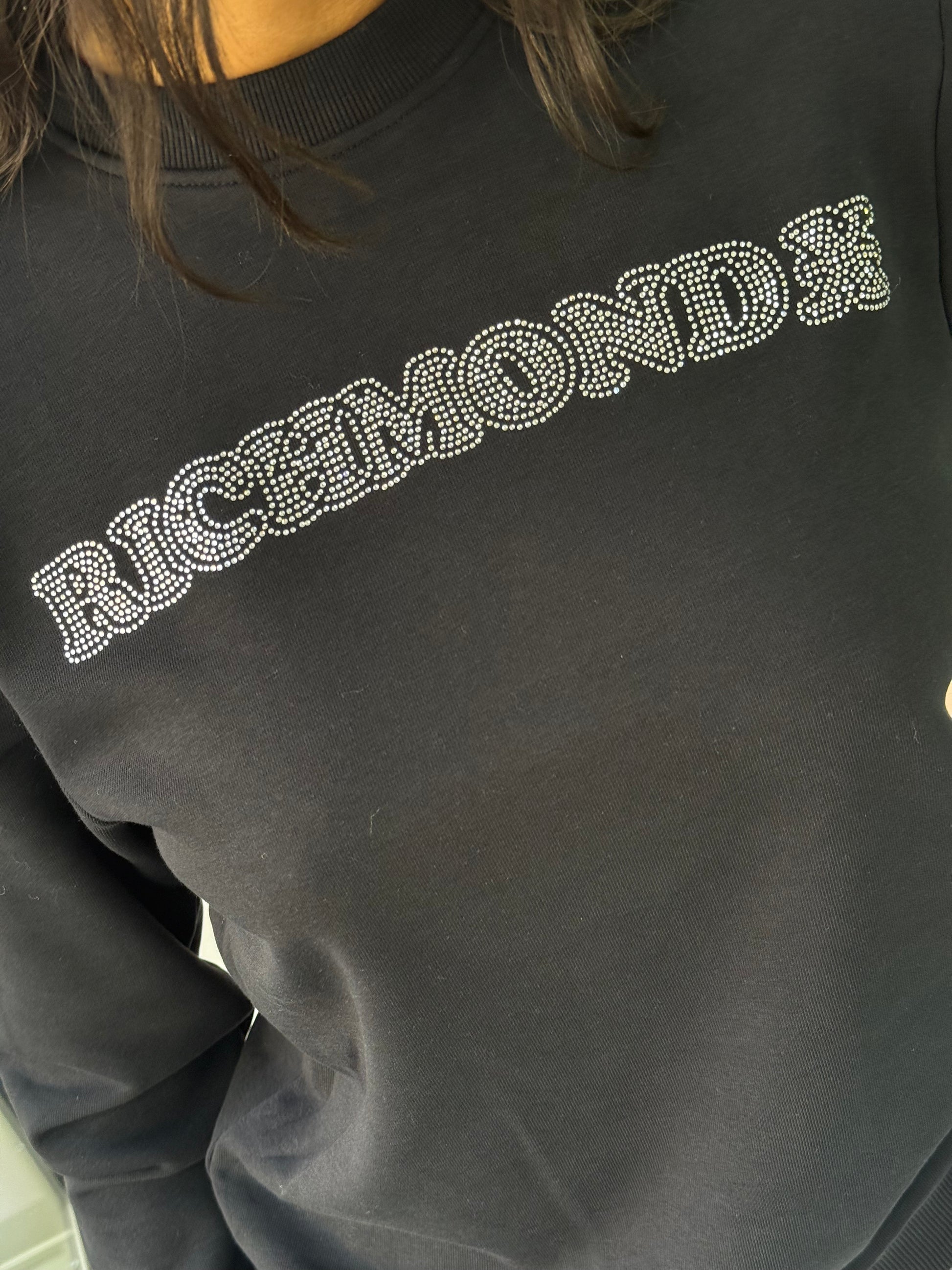Felpa di colore nero o di colore bianco con scritta frontale RICHMOND con caratteri maiuscoli, decorati con brillantini e creano uno stile che sembra avere un effetto tridimensionale o leggermente optical, in argento.