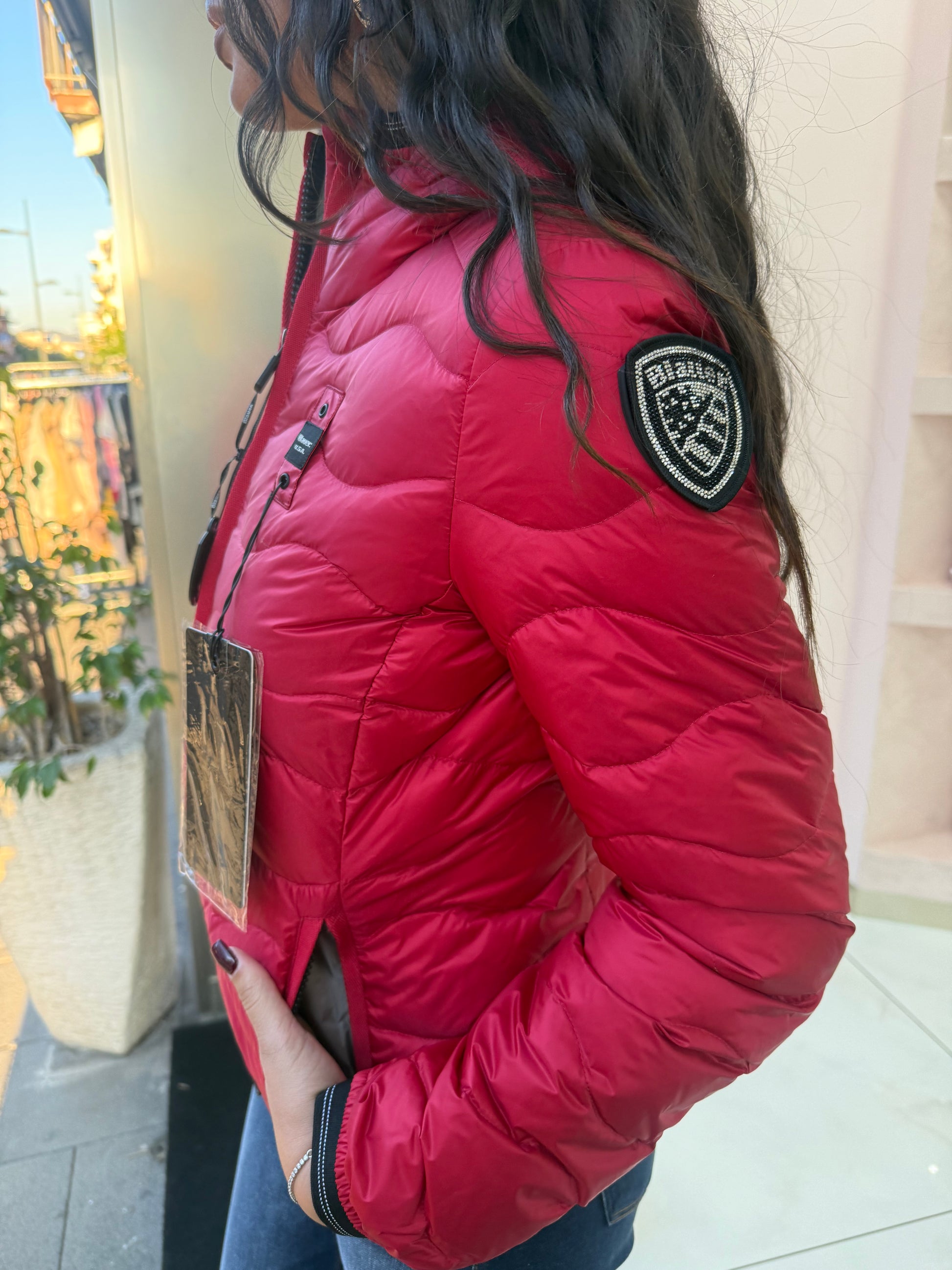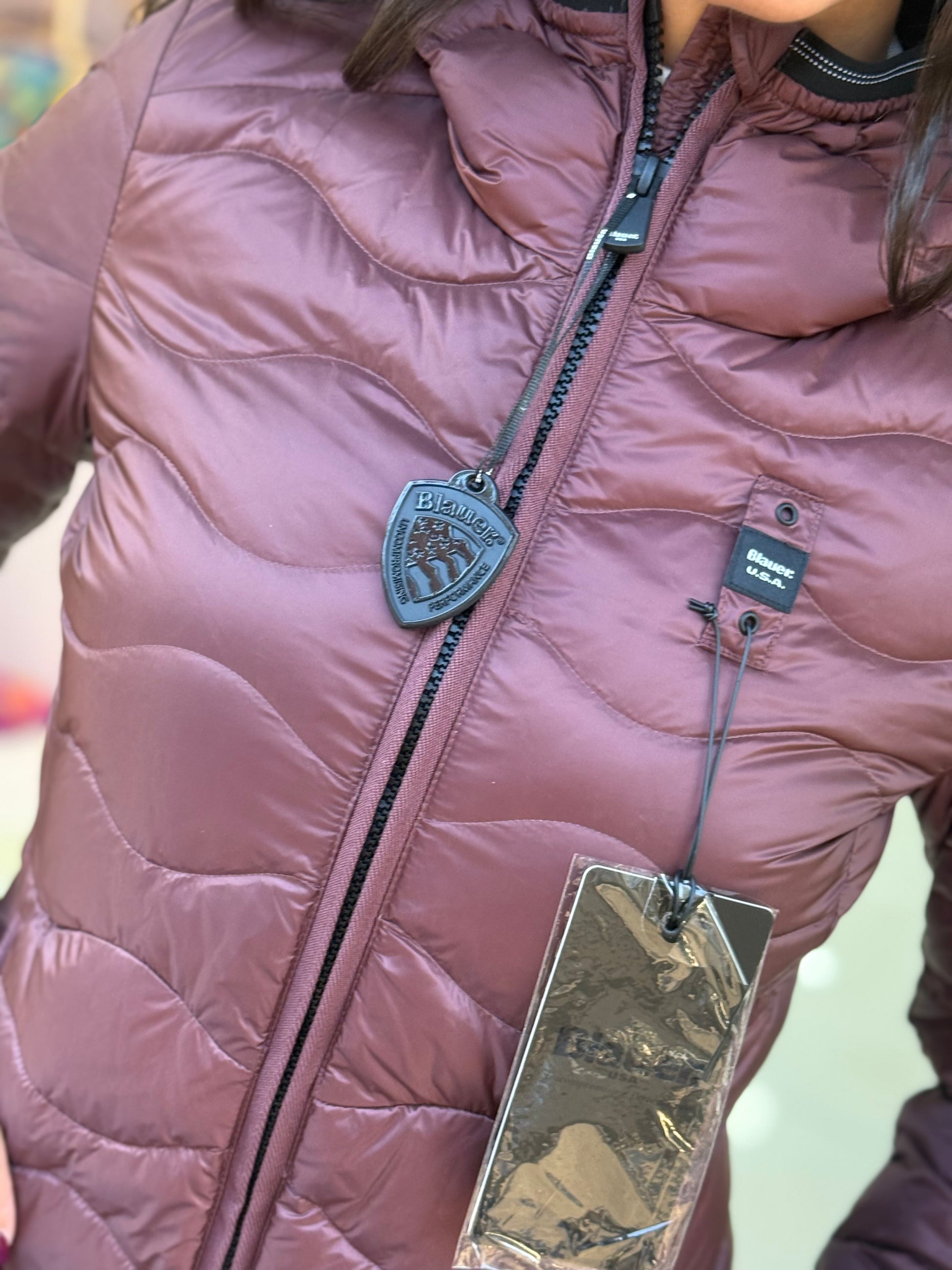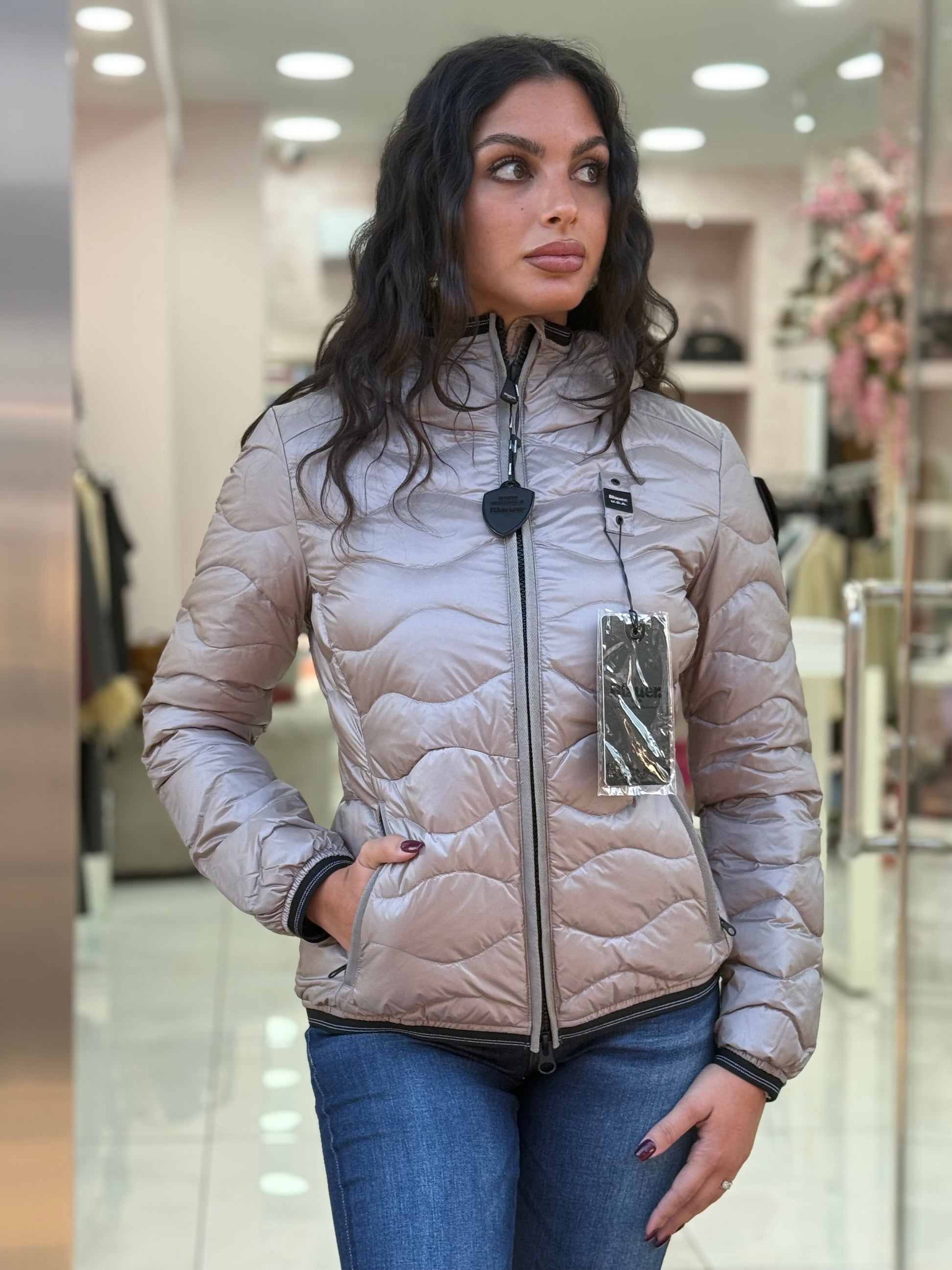 Piumino idrorepellente trapuntato ad onde orizzontali e con profilo del cappuccio in vera piuma. Capo iconico Blauer con imbottitura naturale, calda e non ingombrante, per essere sempre alla moda.