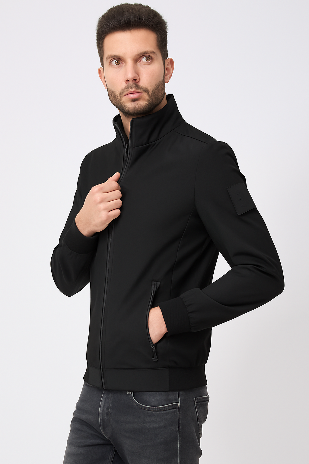 Giubbotto uomo Refrigue con chiusura fullzip, toppa con logo su braccio, tasche laterali e polsi e orlo a contrasto di colore.