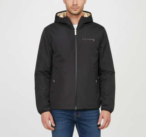 Dotata di cappuccio integrato, zip frontale e tasche laterali, è pensata per un utilizzo quotidiano, garantendo protezione e funzionalità. La vestibilità regolare e la linea dritta assicurano comfort e libertà di movimento.