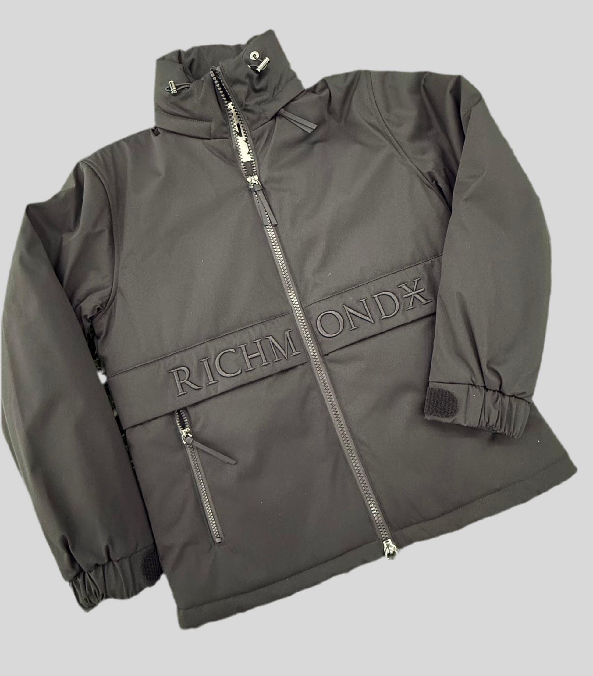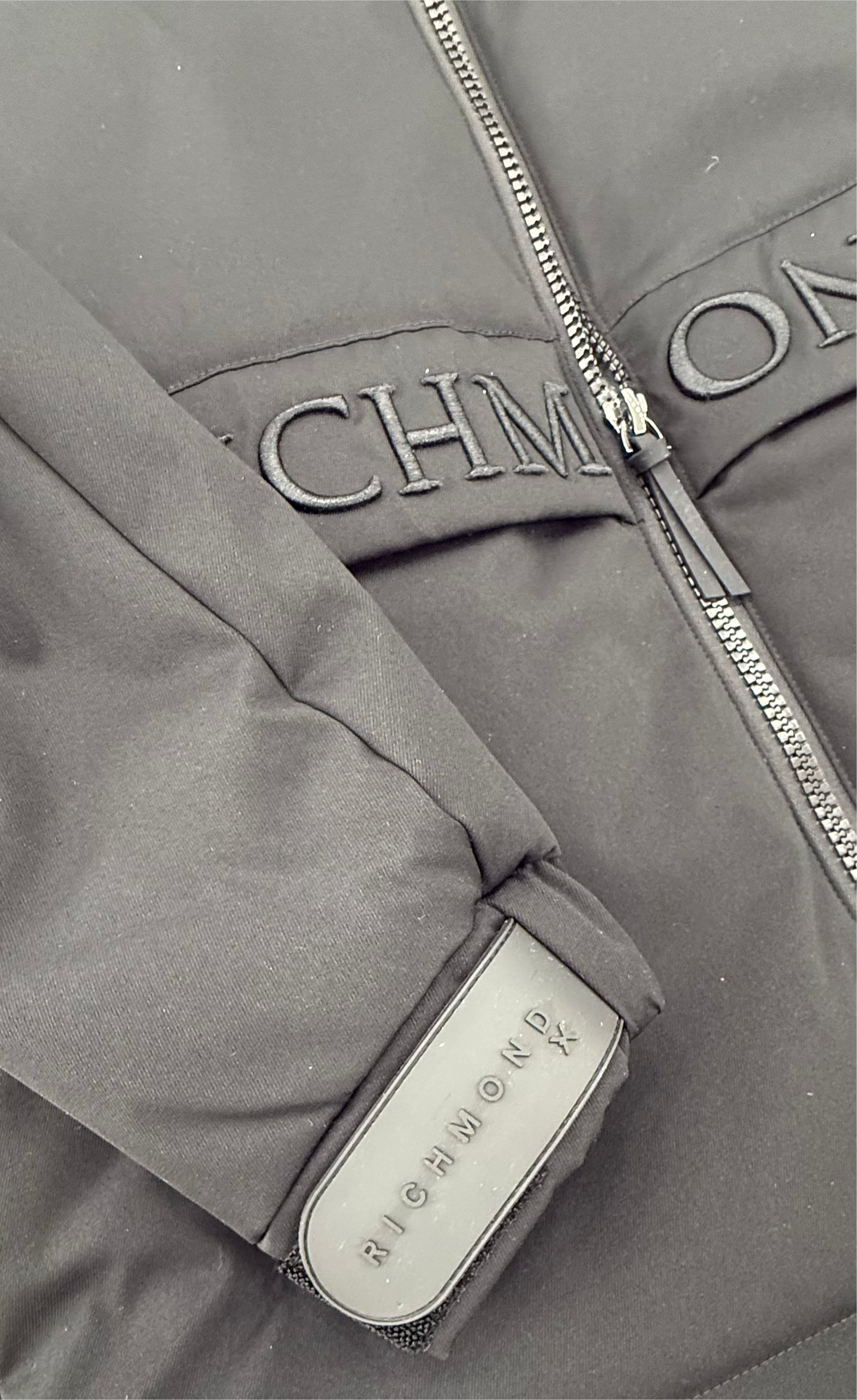 Scritta “RICHMOND X” in rilievo tono su tono al centro, su una fascia orizzontale cucita.