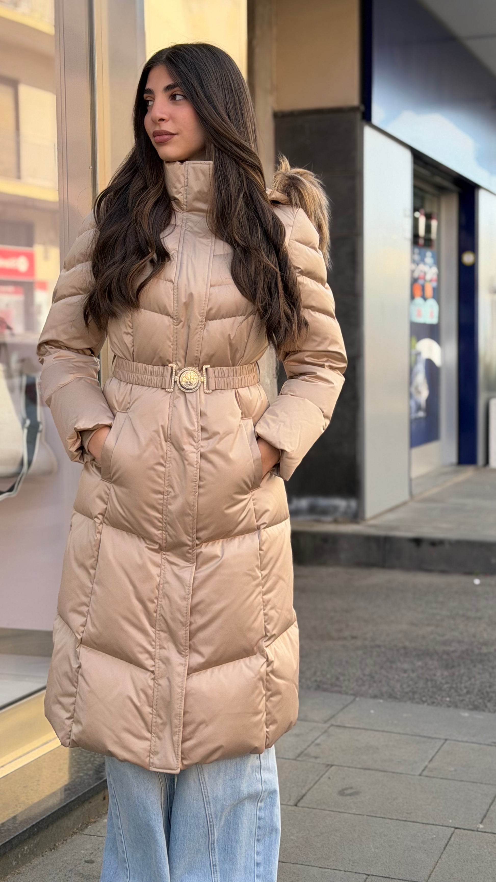 - Cappuccio agganciato con bordo in pelliccia sintetica.