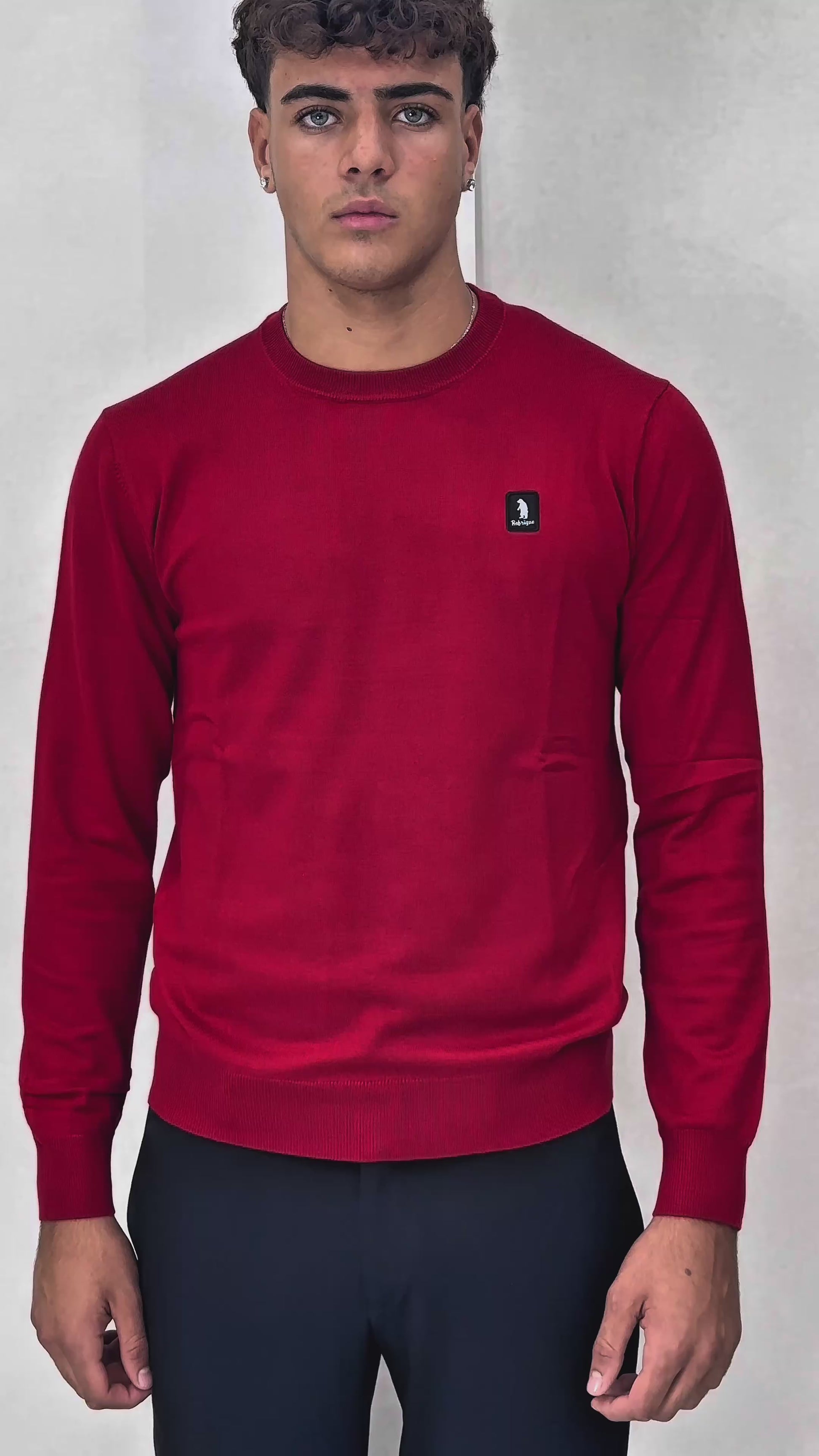 Maglione per uomo firmato Refrigue in tessuto misto. Girocollo, maniche lunghe, lavorazione a nido d'ape all over, costine sugli orli, patch logata sul petto. Regular fit.