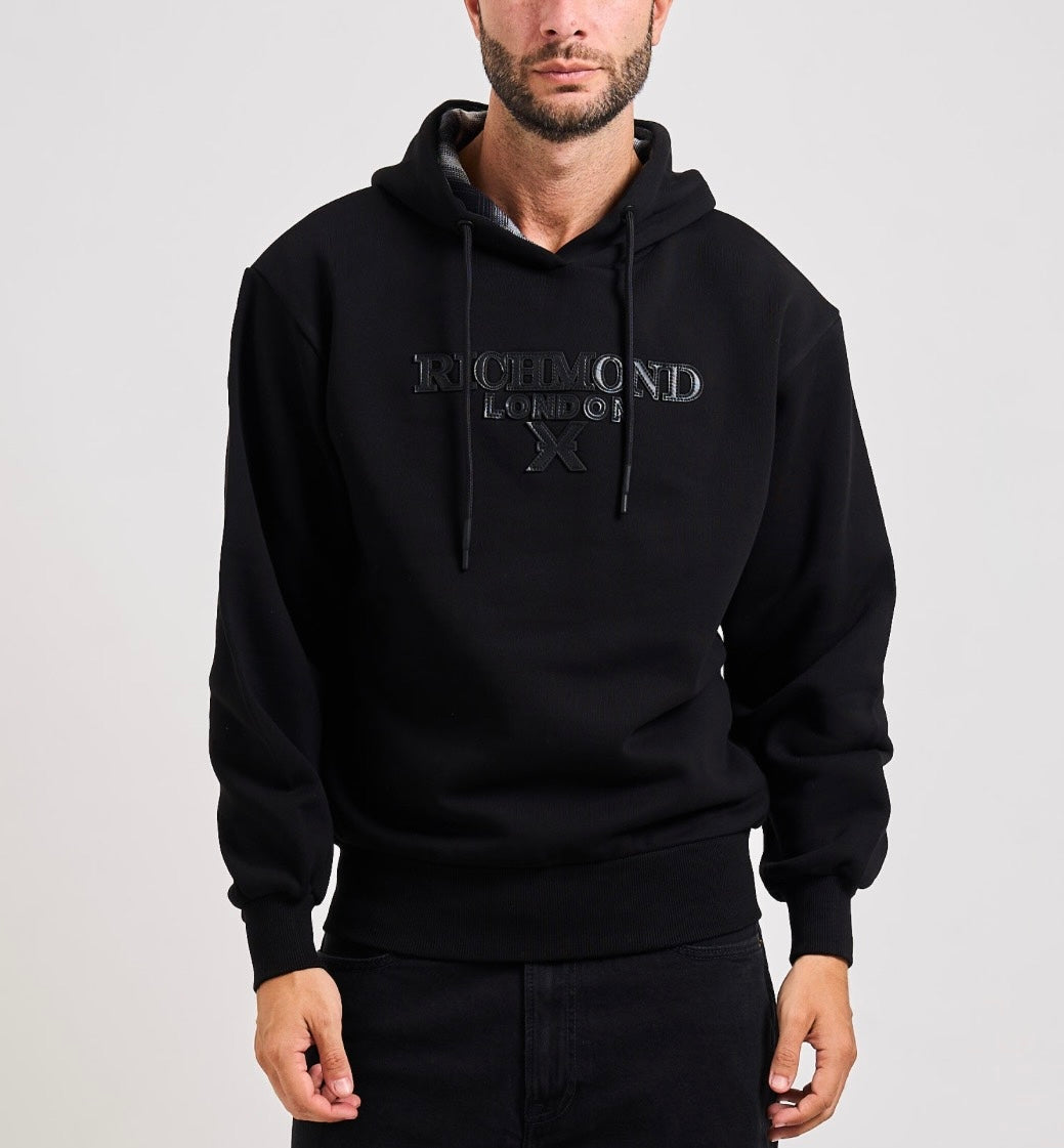 La felpa presenta una Scritta frontale “RICHMOND LONDON X”, ricamata in rilievo con filo tono su tono. Colletto a Girocollo con bordo a costine.