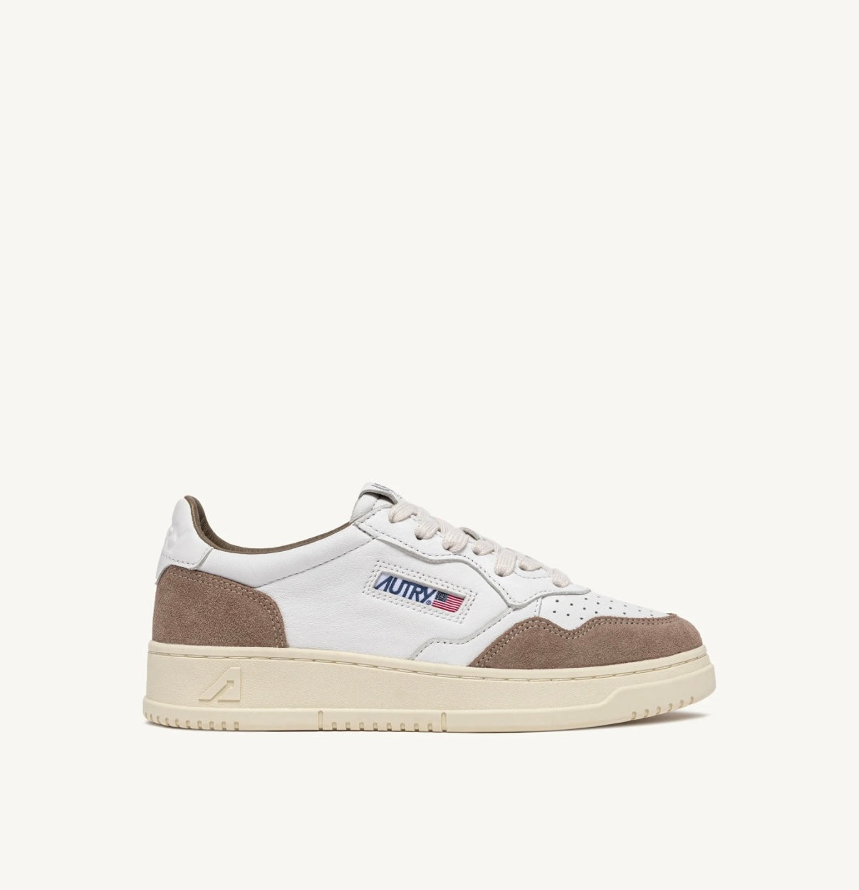 La Medalist di Autry inaugura una nuova era dello stile e del comfort. Con profilo basso alla caviglia, questa scarpa da ginnastica da uomo è realizzata in pelle di capra bianca e ha inserti in suede marrone con talloncino logato bianco a definire la tomaia.