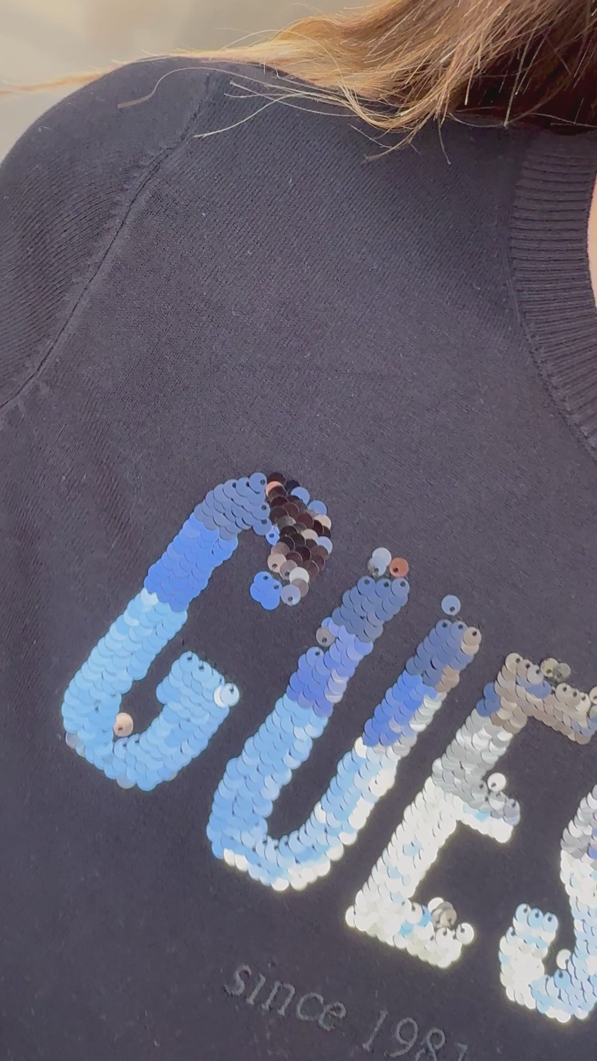 Guess T-shirt realizzata in maglia con applicazione. Il materiale con elevata elasticità garantisce una libertà di movimento completa.