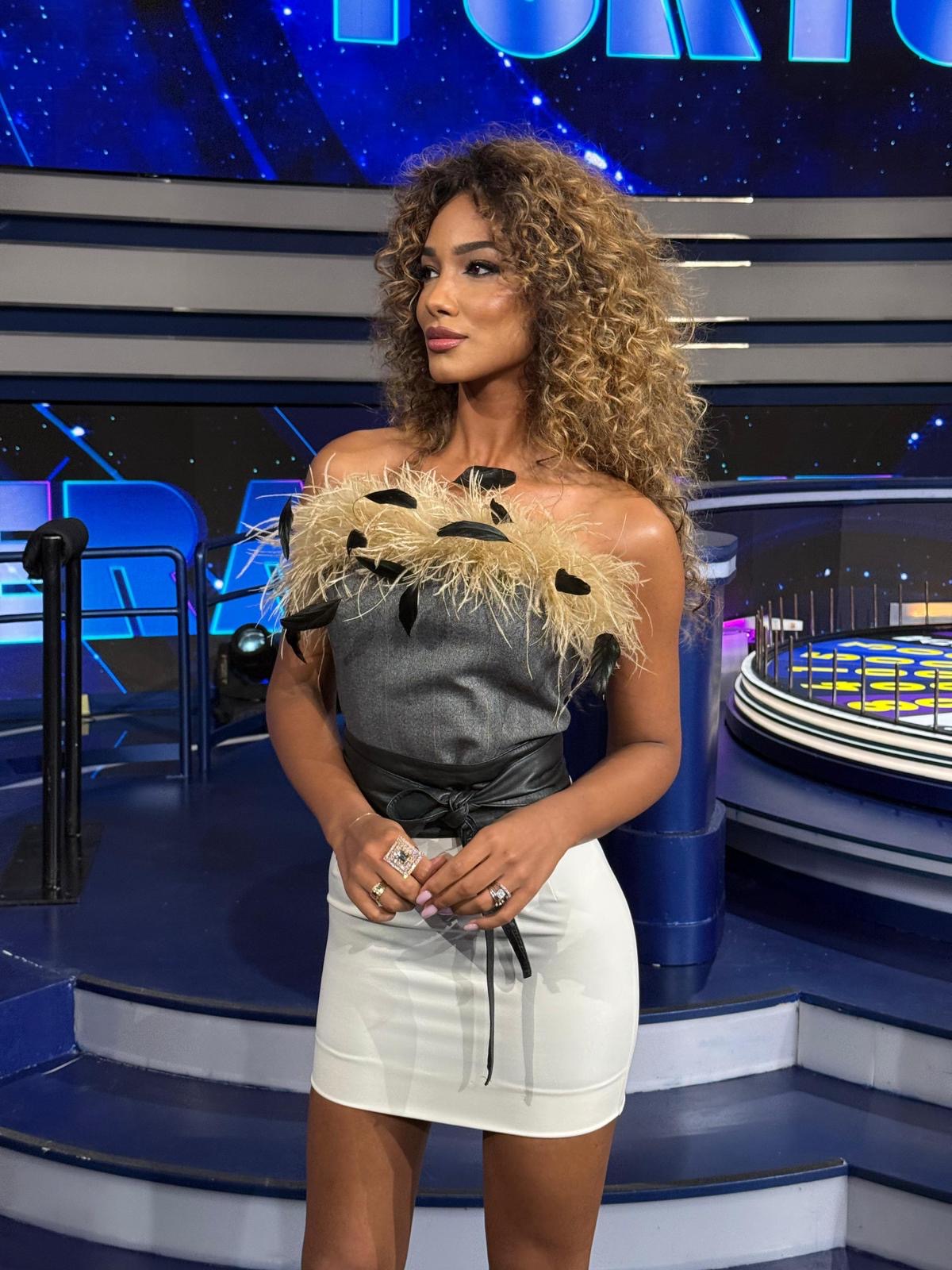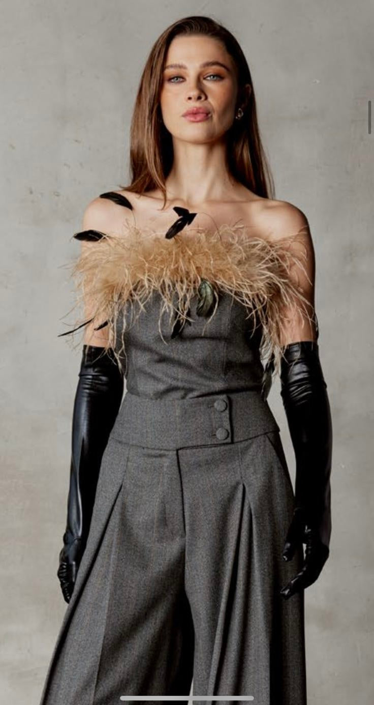 Top o sotto giacca con Applicazione piume E Chiusura con zip.