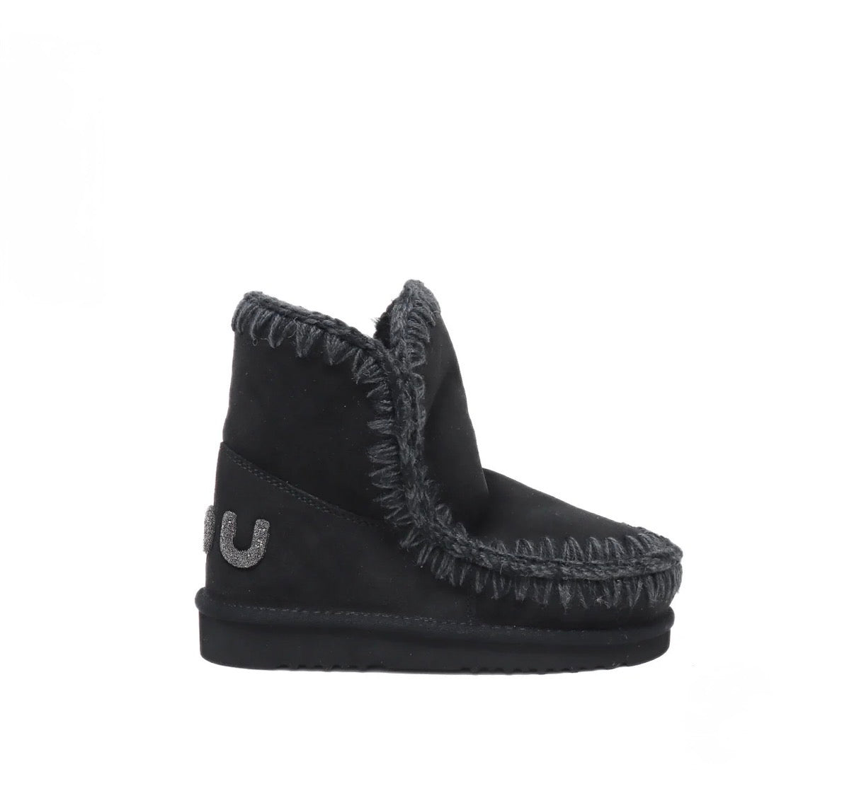Il nostro eskimo 18, il più venduto con logo glitterato, è perfetto per avere un tocco di lucentezza in più ed è disponibile con i dettagli in lana distintivi di mou. Un modello sapientemente lavorato a mano in pelle di montone double face di qualità premium, con tallone rinforzato. Altezza 18cm.